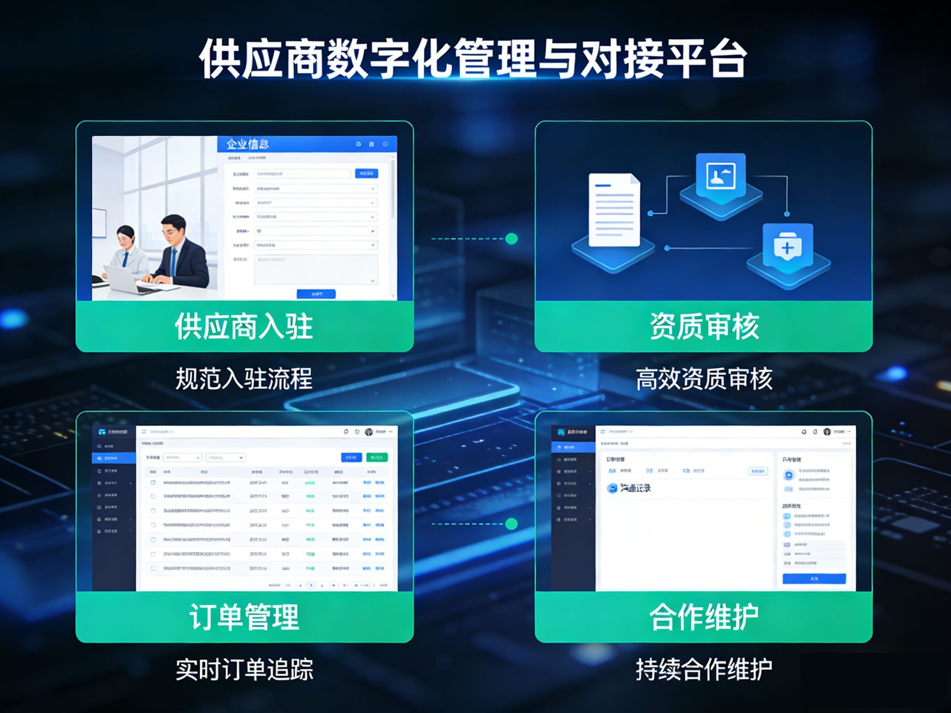 专为上游供应商打造的数字化管理与对接平台,聚焦供应商入驻、资质审核、订单管理、合作维护等核心场景,规范供应商管理流程,提升供应商合作效率。